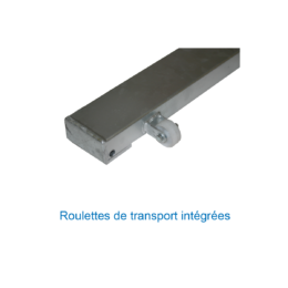 Esta barrera de obstáculos está equipada con ruedas integradas para facilitar las maniobras.