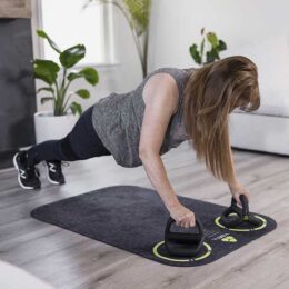 - Funcionalidad 4 en 1: mancuernas, kettlebell, balón medicinal de doble agarre y barras para push-ups.