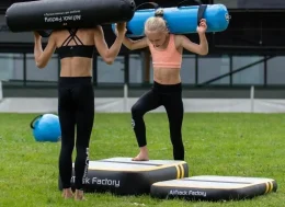 El AirBlock es lo suficientemente estable como para que un entrenador se suba a él para ayudar a los atletas, y lo suficientemente ligero como para llevarlo donde quieras. Es ideal para practicar ejercicios, splits y ejercicios de acondicionamiento. La altura también lo hace ideal para usarlo como soporte para subirse a la barra y a las barras asimétricas.