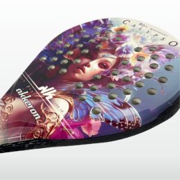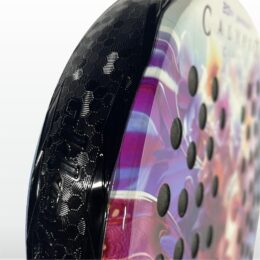 La pala de pádel modelo Calypso 20th de la colección Dream Line de Akkeron incorpora un nuevo protector de última generación, con un diseño renovado, que recubre todo el lateral para su total protección, junto con la posibilidad de nuevos contrapesos para equilibrar el producto como lo desees y obtener un tipo de balance más personalizado. Este protector diseñado para no debilitar el marco, ya que no va taladrado si no pegado en tres partes, y que puede ser sustituido si sufriese daños sin problema por uno nuevo, quedando el producto totalmente intacto y listo para el juego en cuestión de segundos.