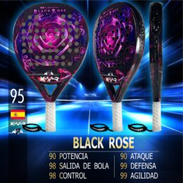 BLACK ROSE, un modelo diseñado específicamente para mujeres, fusiona elegancia y rendimiento. Experimenta un control sin precedentes en tus golpes de fondo. Con un punto dulce expansivo y una disminución de vibraciones, esta pala se adapta perfectamente a tu estilo de juego. Su composición única redefine la sensación de equilibrio entre control y potencia, proporcionando una experiencia extraordinaria en cada golpe.