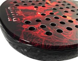 En la volea, la DIABLO PRO entra en armonía con la bola. Su alta manejabilidad y el canal de aire del corazón aceleran el golpe, manteniendo una sensación de control que nunca se pierde. Una pala completa que, gracias a su composición, favorece el juego de efectos con un time-in que facilita la ejecución.