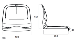 Silla anatómica con respaldo de 350mm para su instalación frente grada de obra, metálica o banquillos entre otras.