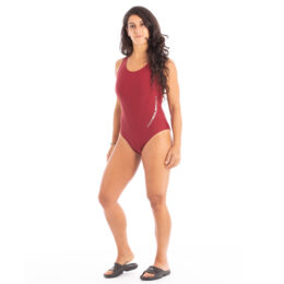 Bañador de línea básica de Squba con una excelente relación calidad-precio. Muy resistente al cloro y de secado rápido. Espalda de nadador y acabado de la apertura en O para aportar una gran libertad de movimientos a la nadadora. Composición del forro: 100% Poliamida. Tallas: S, M, L, XL, XXL.