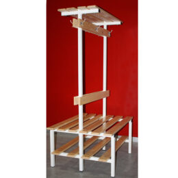 BANCO VESTUARIO DOBLE CON ZAPATILLERO, PERCHA Y ESTANTE SUPERIOR