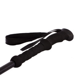 Bastón de aluminio 6061 con empuñadura de EVA y correa de muñeca.. Sistema Anti Shock para un mejor confort a la hora de hacer tus caminatas por la naturaleza. Incorpora contera de protección y roseta para nieve. Regulable en altura a través de segmentos telescópicos. Longitud: 135cm (18-16-14mm).