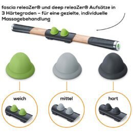 ¡Llévese a casa esta novedad mundial patentada! Con el aparato de masaje para fascias, de madera maciza y gran calidad, conseguirá un fuerte aumento de su circulación sanguínea. Las adherencias de las fascias se sueltan y el tejido muscular se rejuvenece y regenera. El fascia releaZer® y deep releaZer® es óptimo para el tratamiento de nuca y espalda, así como de caderas y muslos.