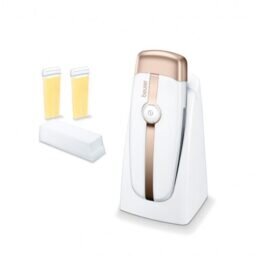 El aplicador de cera depiladora tibia le permite depilarse en profundidad y rápidamente sin salir de casa. En la estación base se puede calentar simultáneamente el segundo cartucho de cera, lo que le permitirá depilarse sin tener que hacer pausas.