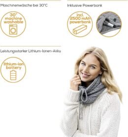 Bufanda tubular térmica con batería externa extraíble y 3 niveles de calo