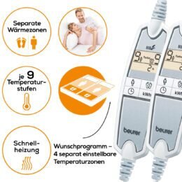 El calientacamas garantiza calor por partida doble mediante 2 interruptores y formato extragrande. 2 personas pueden utilizar el calientacamas y elegir los ajustes que deseen.