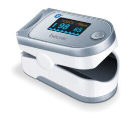 El pulsioxímetro mide la saturación de oxígeno arterial (SpO2) y la frecuencia cardiaca. A través de Bluetooth® los valores medidos se pueden transmitir muy fácilmente a “beurer HealthManager” para evaluarlos allí.