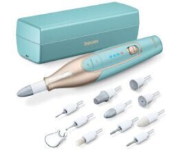 Para lucir manos y pies radiantes y bonitos. Ya sea para cortar, limar, dar forma y pulir las uñas o para eliminar durezas de la piel, cutículas, callos y ojos de gallo, con los 10 accesorios de alta calidad se consiguen una manicura y pedicura como las de un profesional. Este práctico estuche también funciona como estación de carga para el aparato de manicura y es ideal para viajes.