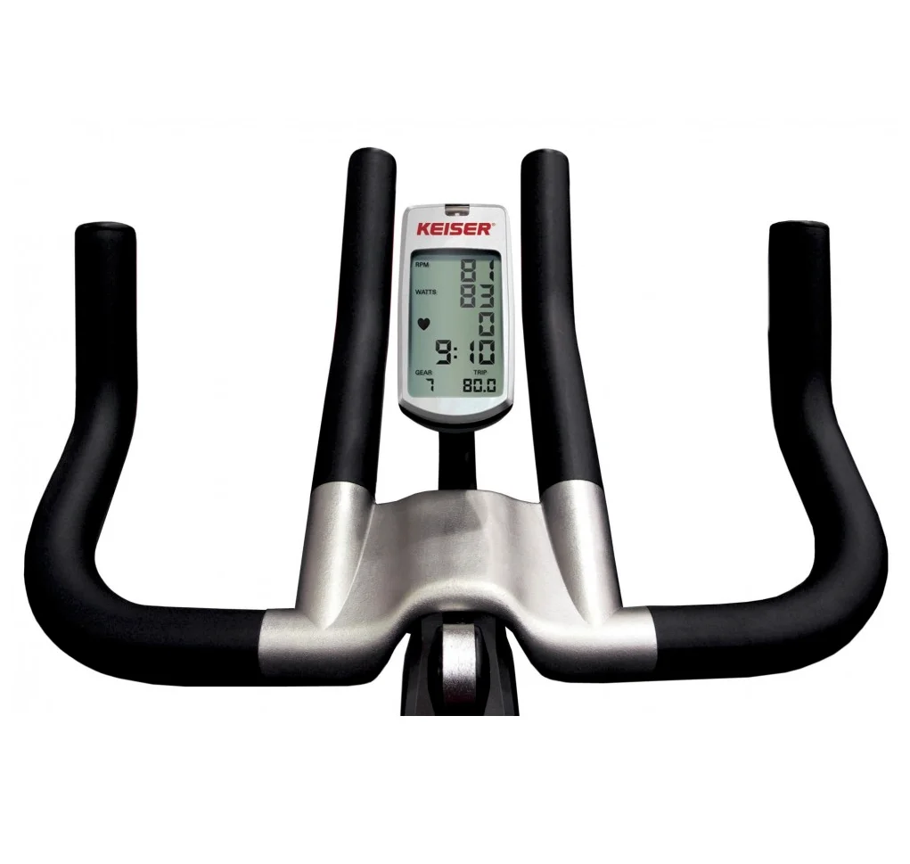 El display de la bicicleta supone uno de los mayores y más importantes avances presentados hasta la fecha dentro de las bicicletas de Ciclismo Indoor. La consola proporciona al instante una precisa y valiosa información que puede ser utilizada por el profesor a la hora de programar, impartir y controlar las clases, al mismo tiempo facilitará el seguimiento en la evolución, progreso y mejora de la condición física del alumno. Con una resistencia adecuada, pedaleando a una cadencia dentro de unos parámetros seguros y visualizando la potencia que se genera, el alumno se beneficia de un entrenamiento global mucho más efectivo. La consola es al mismo tiempo un elemento motivador importante, que utilizado correctamente por el instructor, ayudará al desarrollo de la sesión. Se trata, en esencia, de conseguir mejores resultados.