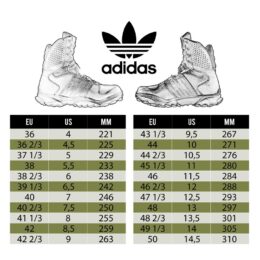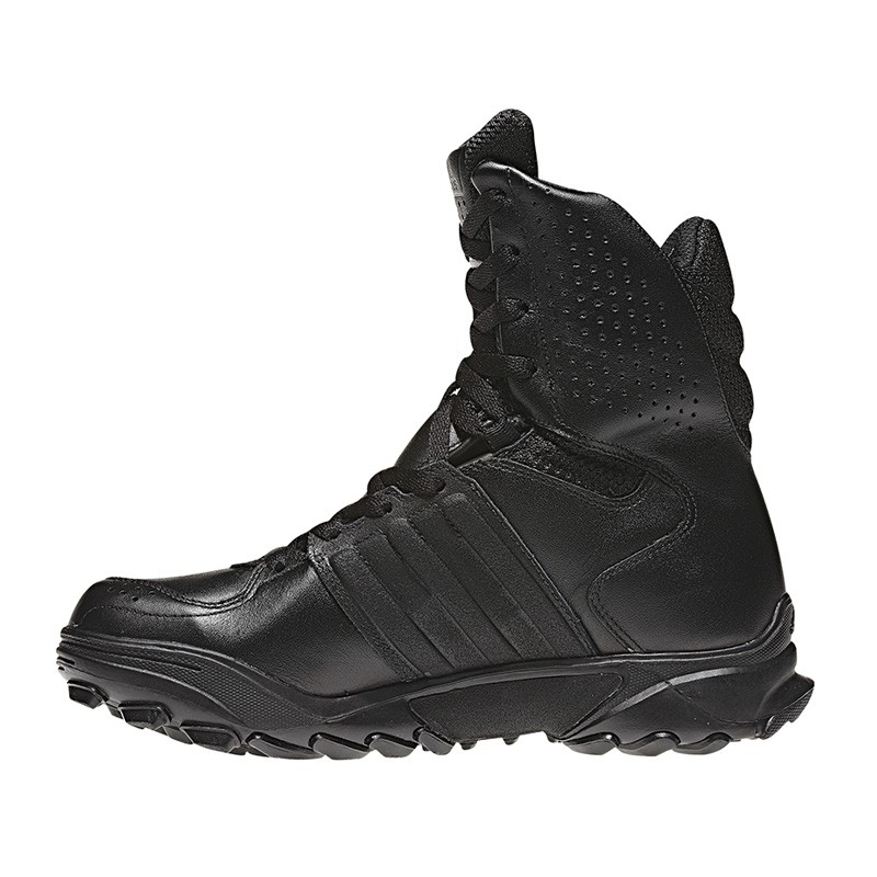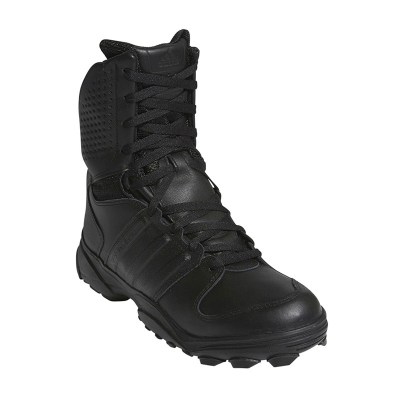 Las botas de caña alta GSG 9.2, pertenecientes a la línea táctica de Adidas, están fabricadas en piel granulada y tejido sintético. Su membrana Climaproof protege el pie de la lluvia y la humedad; contando con costuras selladas y tratamiento para repeler el agua en la parte superior.