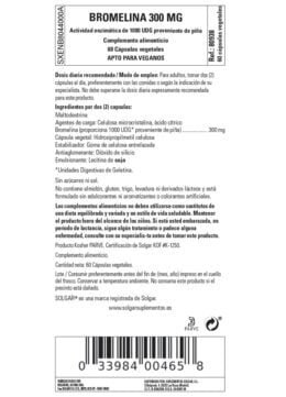 Bromelina 300 mg de Solgar® aporta la enzima proteolítica obtenida de piña fresca, Ananas comosus. Actividad enzimática de 1000 UDG*.