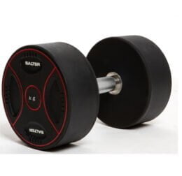 -Soporte completo con 6 juegos de mancuernas TPU de 32.5, 35, 37.5, 40, 42.5 y 45 KG. -Peso total con mancuernas: 465 Kg. -Dimensiones: 147x60x110 cm.