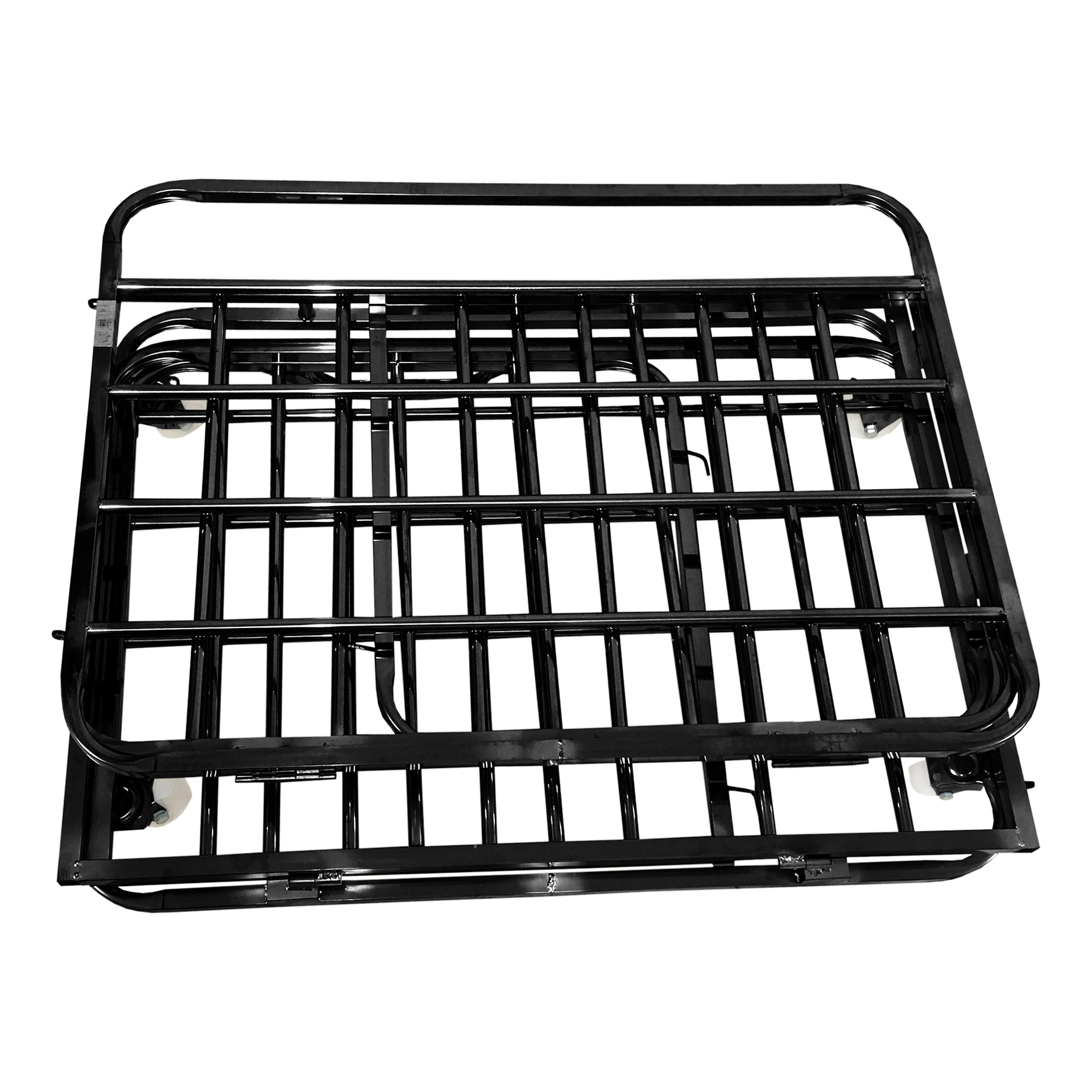 Carro portabalones de hierro con estructura metálica. Se puede plegar para facilitar su traslado y almacenaje. Cuenta con cuatro ruedas giratorias en 360º sin freno. Capacidad: 30-35 balones según deporte. Medidas 70x80x90 cm. Distancia entre barrotes: 10,5cm aprox. Medidas del packaging: 93x91x12cm. Peso: 11kg.