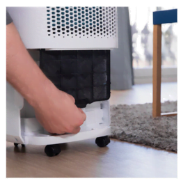 - Gracias a su filtro de carbono el deshumidificador es capaz de purificar el aire captando ciertas partículas contaminantes nocivas para la salud y otras como malos olores o humedad.