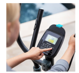 - Monitor LCD que muestra: tiempo, velocidad, calorías consumidas, distancia total recorrida, pulsaciones, cadencia, rpm y programas.