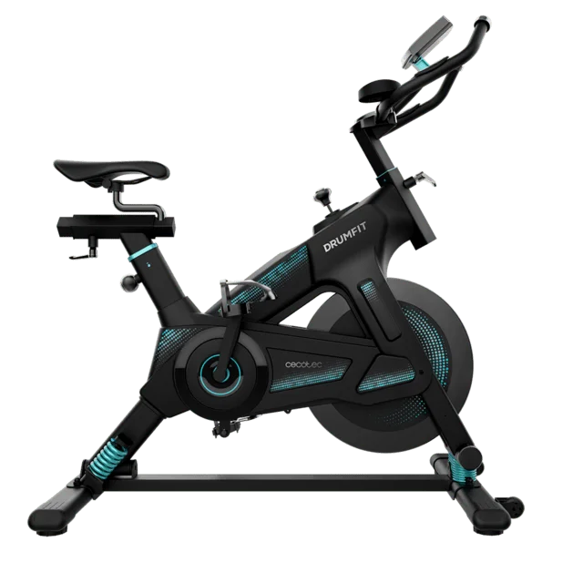 Bicicleta indoor con tecnología Dynamic Pro, volante de inercia de 23 kg, resistencia manual, manillar y sillín deportivos, pantalla LCD, sensor de frecuencia cardíaca, calapies y freno de emergencia.Bicicleta indoor