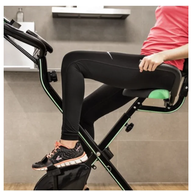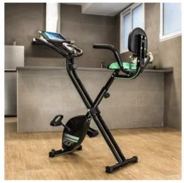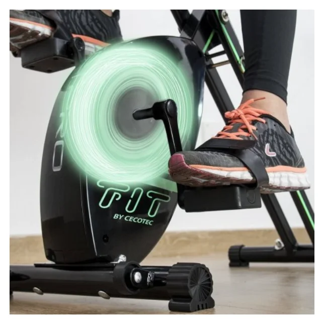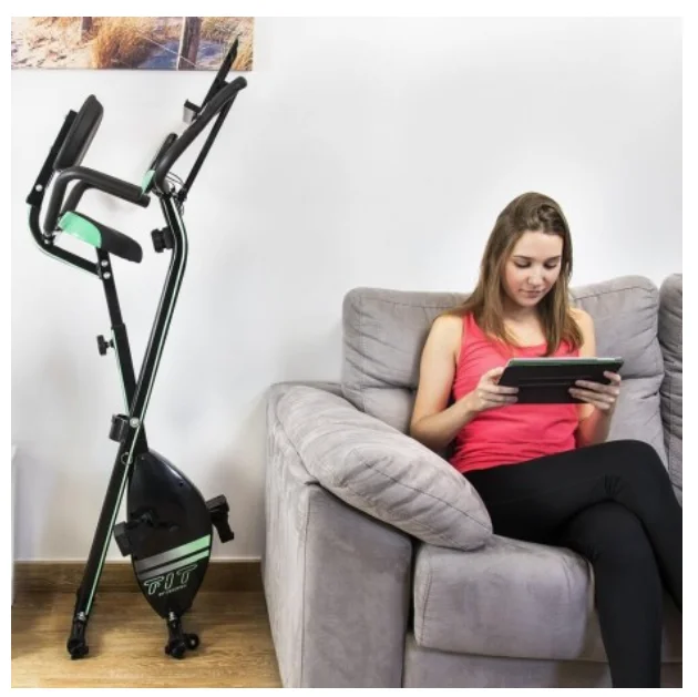 - Bicicleta estática plegable diseñada para el máximo confort con funcionamiento magnético, respaldo y manillar doble.