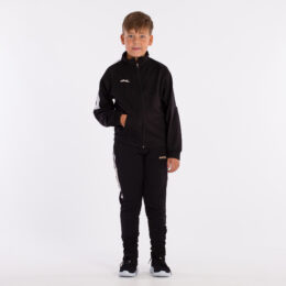 Chándal combinado con diseño lateral. Pantalón de corte estrecho con puño y cintura ajustable. Chaqueta con cremallera frontal, puños y cintura elástica. Cuenta con bolsillos laterales con cremallera. Gramaje: 260gsm. Tallas: 6, 8, 10, 12, 14 años, S, M, L, XL, XXL.