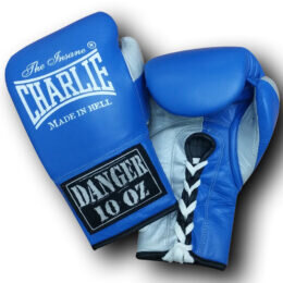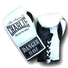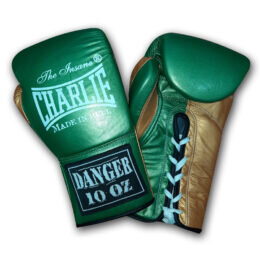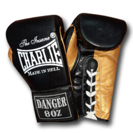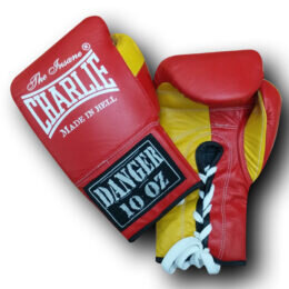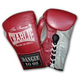 Guantes de Boxeo Danger de la marca Charlie están fabricadas de piel de vaca de alta calidad, cierre de cordones y hay cuatro variedades de colores para elegir. Para el uso profesional.