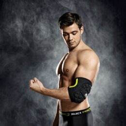 Codera para portero con almohadillas de neopreno-SBR de 4 mm de grosor en la parte trasera y 3 mm en la delantera. Protege contra la hiperextensión del codo y minimiza el riesgo de lesiones. Ajustable con correas transversales.