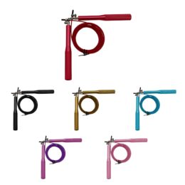Comba de alta velocidad ideal para ejercicios aeróbicos y de crossfit training. Equipada con rodamientos metálicos diseñados para mejorar la velocidad de la cuerda así como para el ajuste de longitud de la misma. Cuenta con mandos ergonómicos anti-deslizantes. Longitud máxima: 3m
