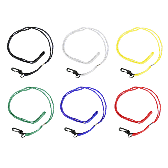 Correa de nylon con enganche de plástico para silbato. Colores surtidos.