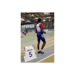 De poliéster resistente al desgaste, con marcaje numérico, equipado con 2 placas pequeñas de salida falsa (1 roja y 1 amarilla).