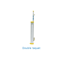 Montantes fabricados con perfiles especiales de aluminio de construcción de pilares telescópicos, que se atornillan con base de acero enrollable cuadrada de 18″ e incluye dos soportes para colocar el travesaño.