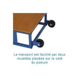 Estructura metálica. Tablero de contrachapado CTBX. Con ruedas para facilitar su transporte.