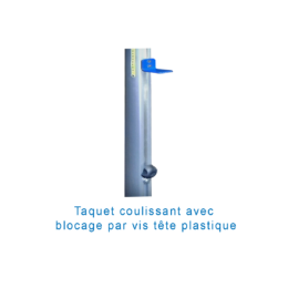 Pasador de aluminio que se desliza en una ranura especialmente diseñada para facilitar su manejo. Cierre de rosca.