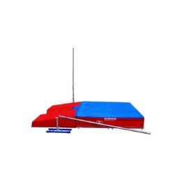 Plegables a menos de un metro de su base, los montantes de pértiga de competición plegables de la IAAF pueden colocarse plegados sobre el sistema de aterrizaje (si la protección de carril está integrada en el sistema de aterrizaje) o en el suelo.