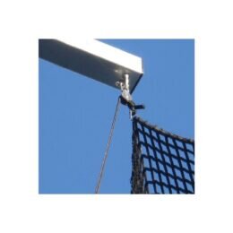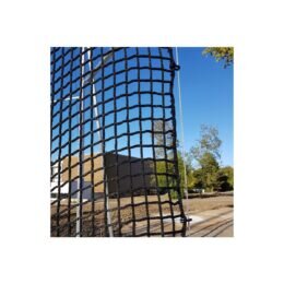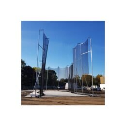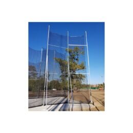 Las redes (de polipropileno trenzado imputrescible de 5 mm de diámetro, malla de 40×40 mm, alta resistencia, color negro, certificadas EN-1263-1, entregadas con malla de prueba) se montan “flotantes” para evitar cualquier “peligro de rebote o rebote hacia el atleta y por encima de la jaula” según las normas de la IAAF.