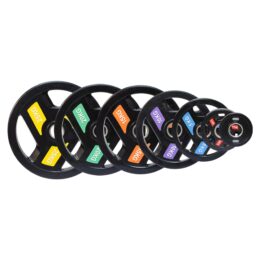 Disco olímpico con agarres para barra de 50mm. Fabricado con diferentes colores para facilitar la diferenciación de peso. Con casquillo metálico y acabado gomoso para proteger el suelo. Combina los pesos como quieras para tus entrenamientos. Excelente calidad. Cuenta con tres agarres para facilitar el entrenamiento con el mismo de forma individual.