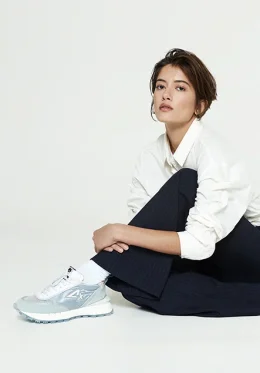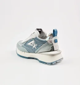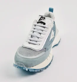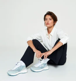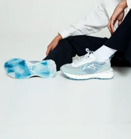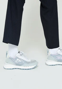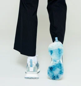 - Suela: plantilla de piel, suela TPU (impreso)+EVA. Puntera: redonda piel con rejilla blanca efecto azul metalizado. Parte superior: piel y pasacordon en goma. Lengueta: piel. Parte lateral: piel, rejilla metalizada y logo (goma). Parte trasera: piel napa, piel metalizada, goma y nylon. Cierre: cordones.