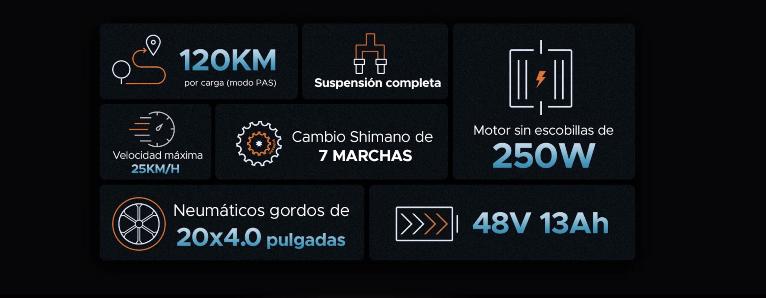 | Velocidad máxima | 25 km/h (la velocidad real variará según el peso del ciclista y las condiciones de la carretera) |