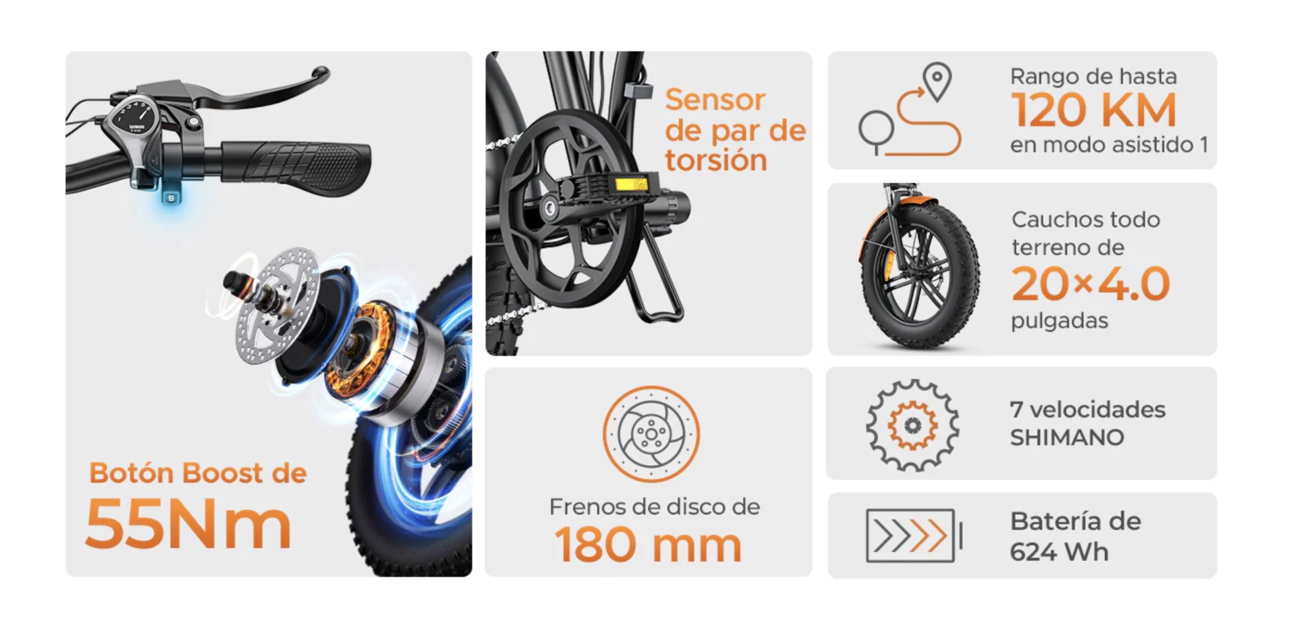 | Neumáticos | Neumáticos anchos de 20 x 4.0 |