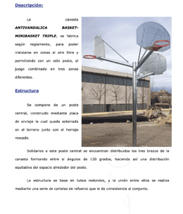 La canasta ANTIVANDALICA BASKET-MINIBASKET TRIPLE, se fabrica según reglamento, para poder instalarse en zonas al aire libre y permitiendo con un sólo poste, el juego combinado en tres zonas diferentes.
