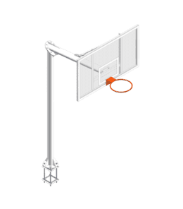 Canasta basket fija al suelo, fabricada en tubo redondo en dos piezas: pie + brazo. Incluye sistema estabilizador y de nivelación del tablero. Disponible dos acabados: pintado o galvanizado.