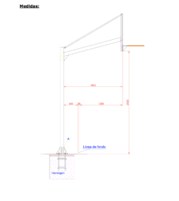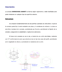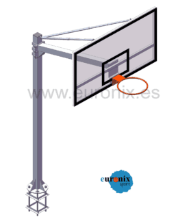 Canasta basket fija al suelo, fabricada en tubo cuadrado en dos piezas: pie + brazo. Incluye sistema estabilizador y de nivelación del tablero. Disponible dos acabados: pintado o galvanizado.