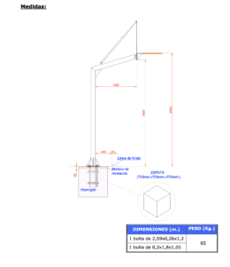 Se compone de dos perfiles cuadrados de 100x100x3 soldados en ángulo, y unidos con un cartabón 100x100x3, que asegura la estabilidad de la estructura.