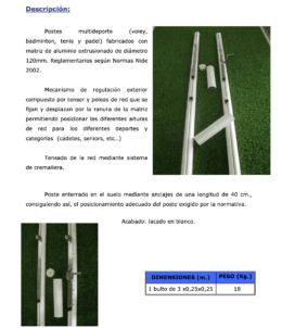 Postes multideporte (voley, badminton, tenis y padel) fabricados con