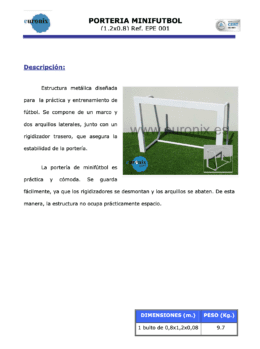 Estructura metálica diseñada para la práctica y entrenamiento de fútbol. Se compone de un marco y dos arquillos laterales, junto con un rigidizador trasero, que asegura la estabilidad de la portería.