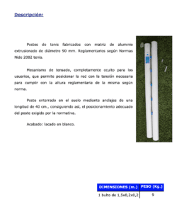 Postes tenis fabricados con matriz de aluminio redonda de 90mm para anclar. Tensado interior de la red. Lacado en blanco.