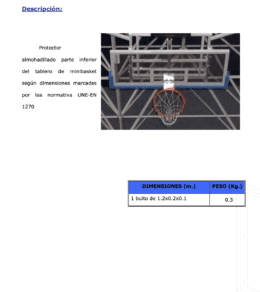 Protector almohadillado parte inferior del tablero de minibasket según dimensiones marcadas por las normativa UNE-EN 1270