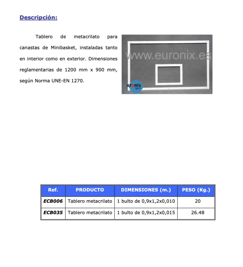 EURON – TABLERO MINIBASKET METACRILATO- ECB006/035