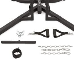 - Extras: Incluye barra recta, tiradores de mano acolchados y tirador de tobillo